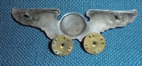 USAAF Air Crew 3" wings, in sterling silver, no maker mark, wings are in very good condition, with some slight loss of finish to the emblem, but does not detract