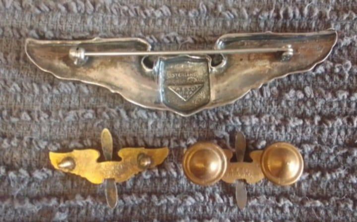 Full size WWII Pilots wings by A.E. Co. Marked sterling.