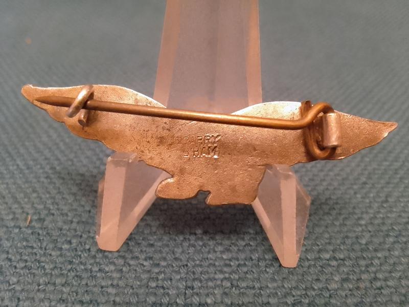 Here we have a very rare set of 'Guinea Pig club Wings' wings are maker marked Parry B'HAM and are 2" long, and have the typical English pin fitting.